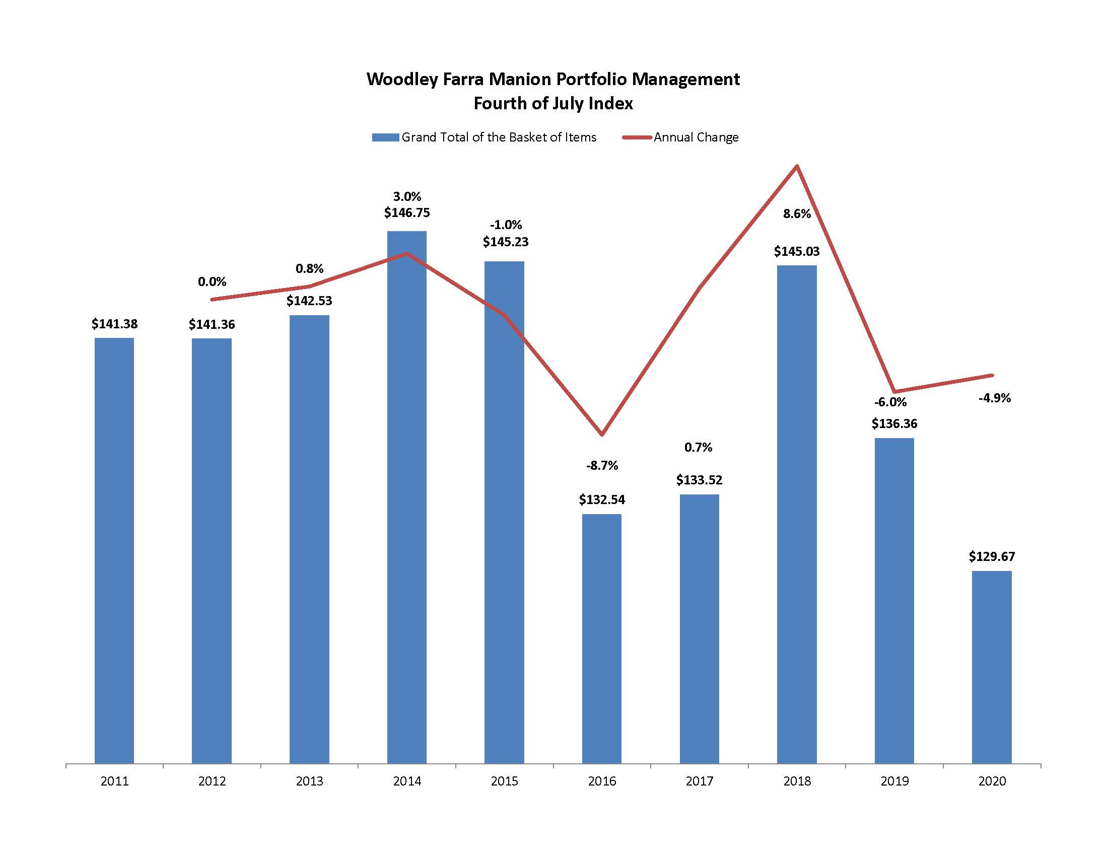 Below you will see our annual “Fourth of July Index”. The impact of COVID on consumer prices is quite evident. The Index is a basket of common Fourth of July goods purchased in Indianapolis for a picnic, including the cost of a full tank of gas to get to/from the picnic location. Thanks to much lower gas prices, the cost of the picnic declined 4.9% over 2019. Excluding gasoline, the index is up 2.9% over last year, with hamburger experiencing the highest inflation (+18%). The COVID influence is also seen in several other items like disposable utensils and potato chips.
