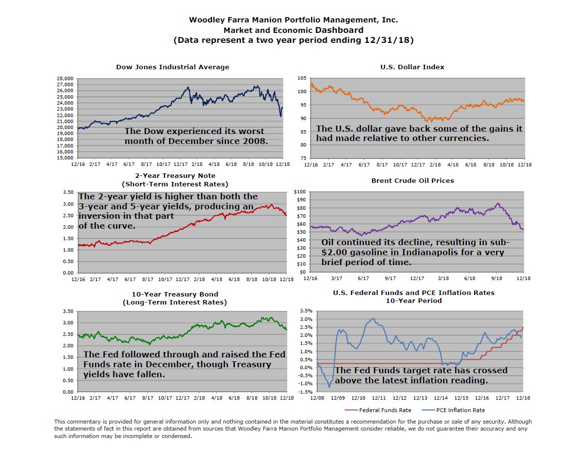 We expect U.S. growth to moderate but remain above post-Financial Crisis levels. Inflation still seems to be well-controlled. Commodities prices are down, especially oil. The only tightness in the economy is in the labor market, but millions of unemployed and under-employed workers are potentially available. Predicting when the market will bottom is impossible, but we are already three months into this downtrend and non-recession bear markets typically last an average of six to seven months. The Fed meets in January and will issue a statement after its meeting. If the tone is temperate and the likelihood of higher short-term interest rates is diminished, the stock market could have a substantial rally.