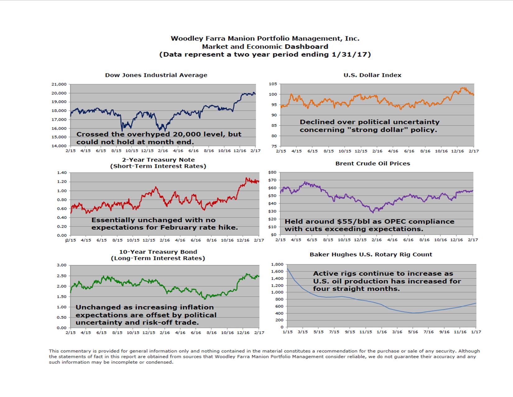 It finally happened! After flirting with the elusive 20,000 level for six weeks the Dow Jones Industrial Average finally crossed the mark at the end of January. Networks plastered the number all over their broadcasts and traders created hats, but what does it all really mean? Frankly, not a whole lot. It’s a nice round number that represents a new all-time high, but if you look at the S&P 500 it also reached a new all-time high, but at the much less marketable level of 2,298.
