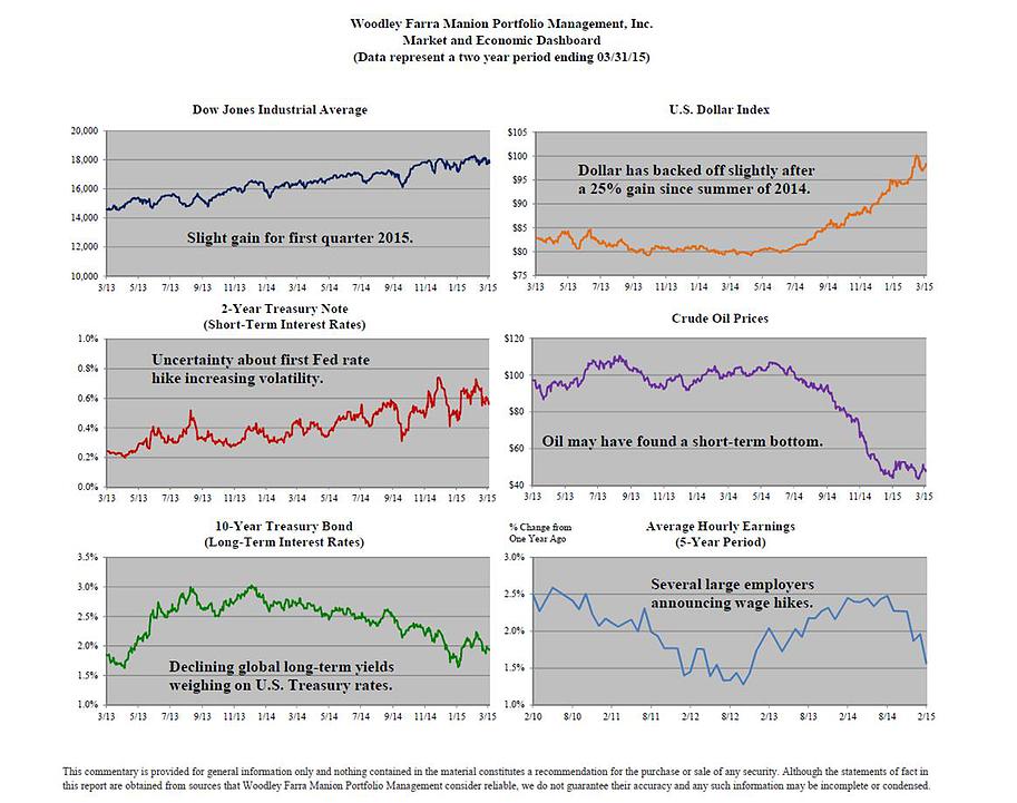 The first quarter was volatile compared to the placid markets we experienced from 2012-2014. The main cause of concern for investors is the increasing likelihood the Federal Reserve will end its financial crisis policy of zero short term interest rates. The Board of Governors of the Fed meets ten times each year. Recent meetings have yielded signs the Fed intends to begin a return to more traditional monetary policy in 2015. The two questions facing investors are: when does the Fed start and how high will short term rates go?