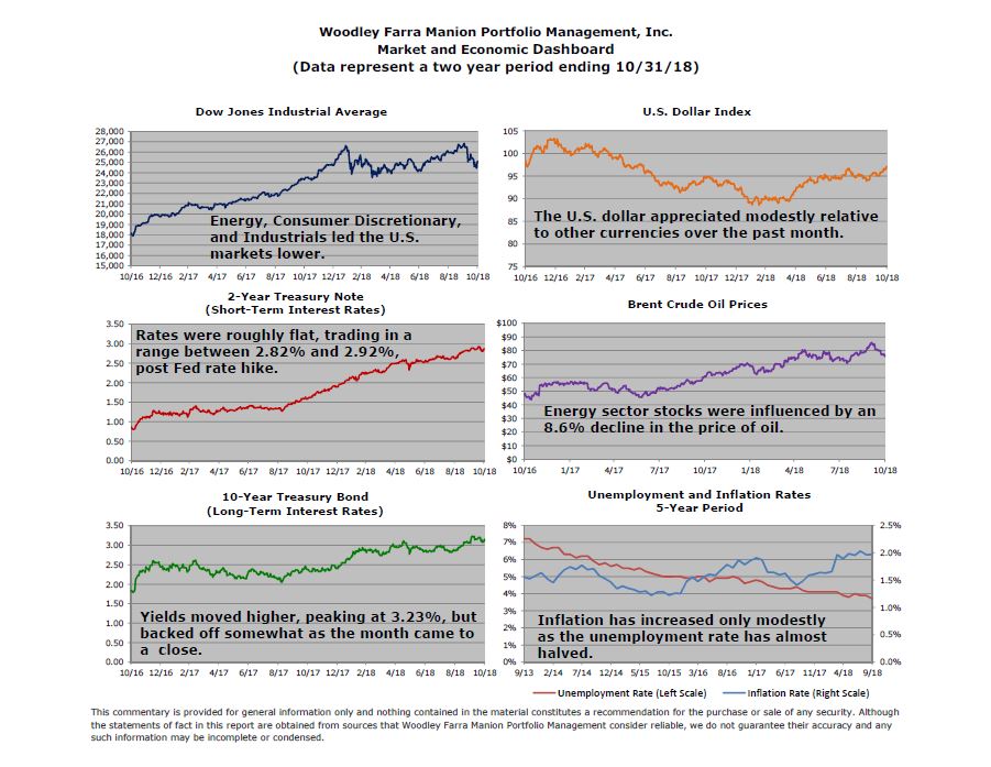 After enjoying five consecutive months of gains, US stocks had a terrible month of October, dropping almost 8% from their highs reached early in the month. Third quarter GDP growth was a very strong 3.5%, buoyed by robust consumer spending. Corporate earnings beat already-high expectations. So why then did the market have a sudden change in attitudes that lead to the October pullback?