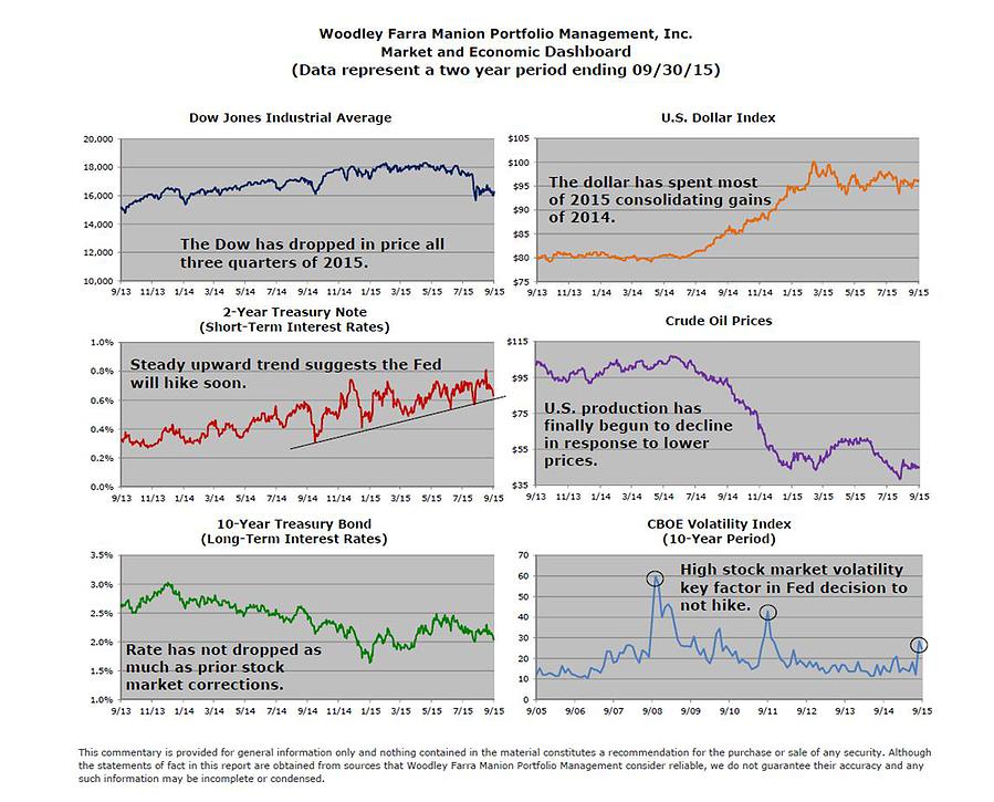 This commentary is provided for general information only and nothing contained in the material constitutes a recommendation for the purchase or sale of any security. Although the statements of fact in this report are obtained from sources that Woodley Farra Manion Portfolio Management consider reliable, we do not guarantee their accuracy and any such information may be incomplete or condensed.